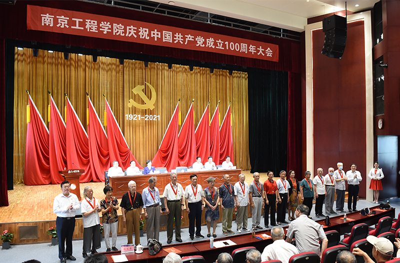 大会在雄壮的《中华人民共和国国歌》中拉开序幕。会上,党委副书记、副院长曹雪虹宣读了《关于颁发“光荣在党50年”纪念章的通知》;党委副书记濮励杰宣读了省委教育工委表彰文件;党委常委、副院长杨征宇宣读了凯发k8官网党委表彰文件。史国君书记、史金飞院长为99名党龄50年以上的老党员中的34位代表现场颁发佩戴了“光荣在党50年”纪念章;1个先进二级基层党组织、2个特色党支部、1名优秀党务工作者、1个党建创新项目、2个最佳党日活动荣获江苏省委教育工委表彰;5个先进二级基层党组织、15个先进党支部、5个特色党支部、72名优秀共产党员、8名优秀党务工作者、15个党建创新项目、25个最佳党日活动荣获凯发党委表彰。