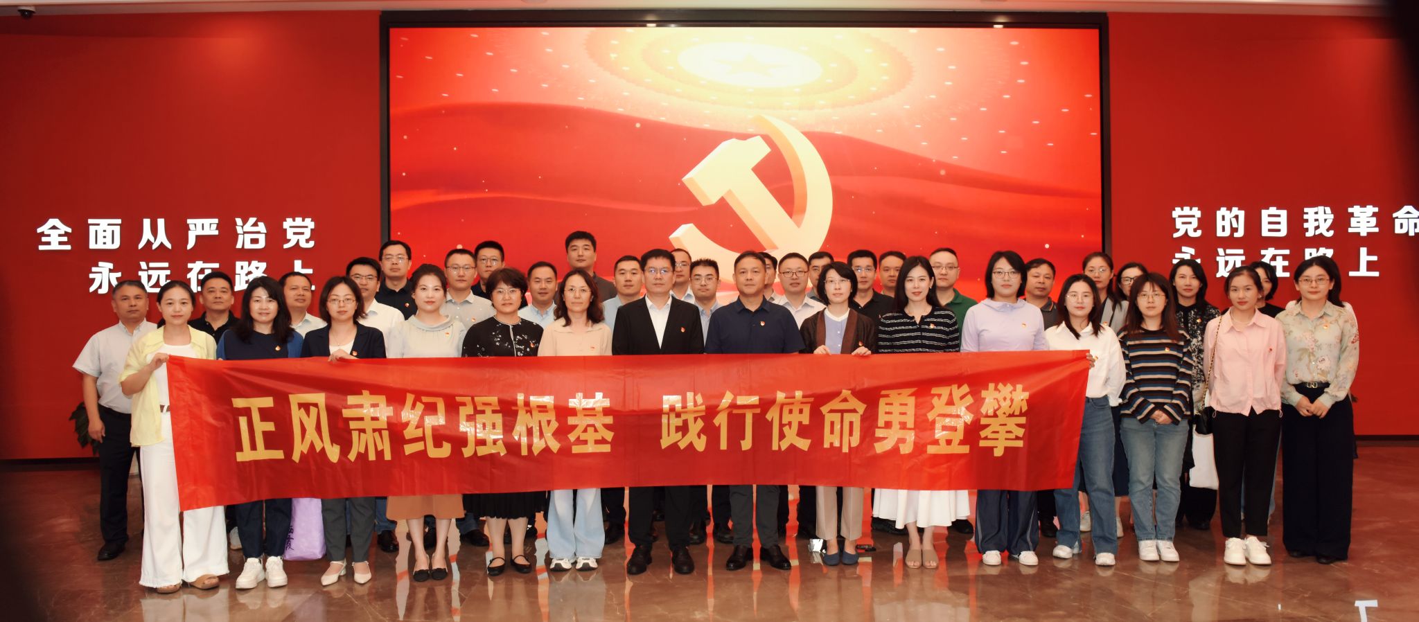 在教育基地,全体党员干部集中观看专题片《永远吹冲锋号》,依次参观了“举旗定向、指路领航”“以案明纪、挺纪在前”“以案促改、系统施治”“以案为鉴、警钟长鸣”等主题展区,通过实物展陈、影像资料等形式,让大家深刻认识到党的十八大以来以习近平同志为核心的党中央推进全面从严治党取得的历史性、开创性成就以及我省党风廉政建设和反腐败斗争成果,教育引导党员干部始终把纪律和规矩挺在前面。