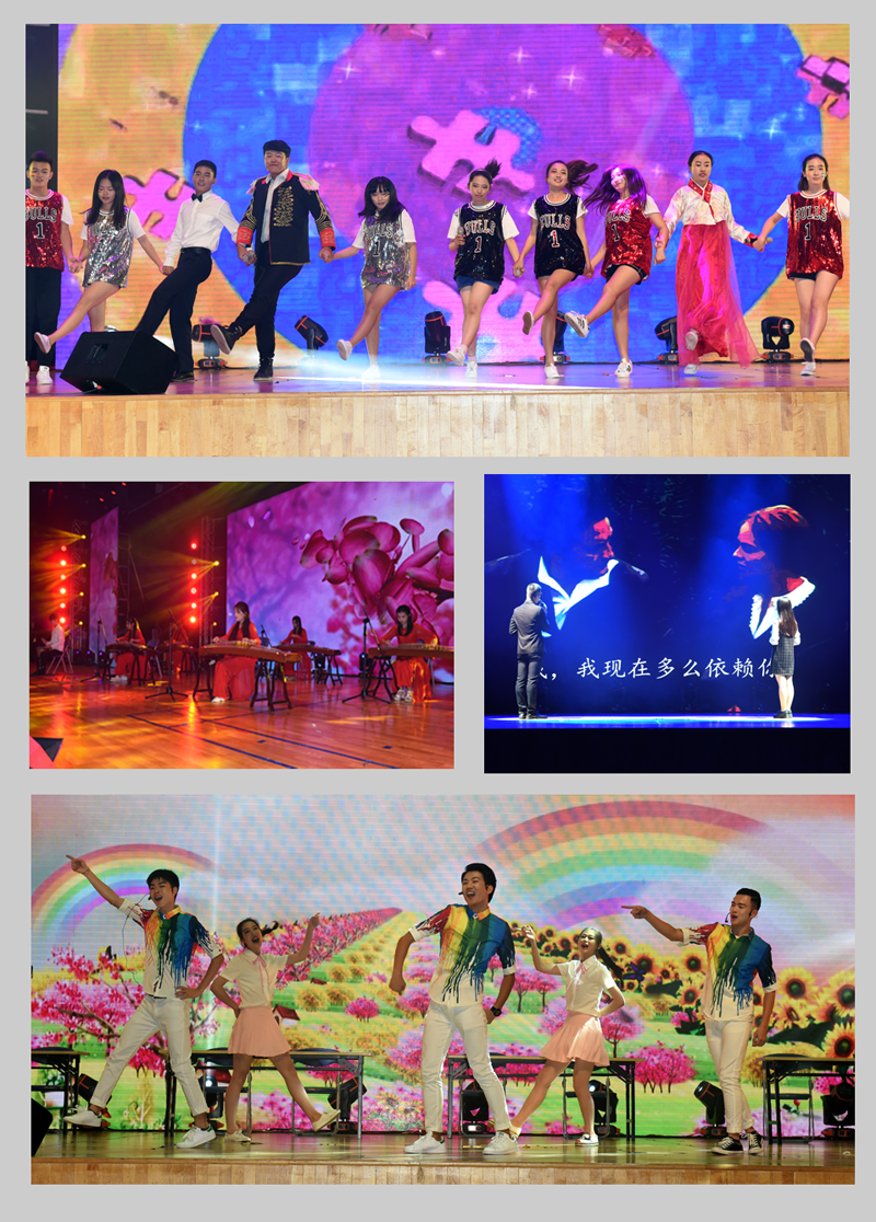 “天生丽质难自弃,长恨一曲千古迷”,一曲由我校教师精彩演绎的戏曲《梨花颂》将晚会推向了高潮;舞蹈《青春画册》以阳光活泼的舞蹈表演,温暖乐观的情景再现,形象生动地演绎了从少年到老年的生活变换,让人感慨万千;《茉莉花》这首民歌之花一直以其婉转悠扬的旋律、优美动听的曲调和充满乡土气息的韵味扣人心弦,经过国际合作交流处五位留学生们的精彩演绎,又增添了几分活泼俏皮,也给观众带来了别样的欢乐。
