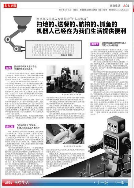 另外记者了解到,东大最近开设了国内首个“机器人工程”本科专业,今年秋季开始招生,首批计划招30人左右。该专业学生毕业后,就业方向是机器人设计应用相关领域。