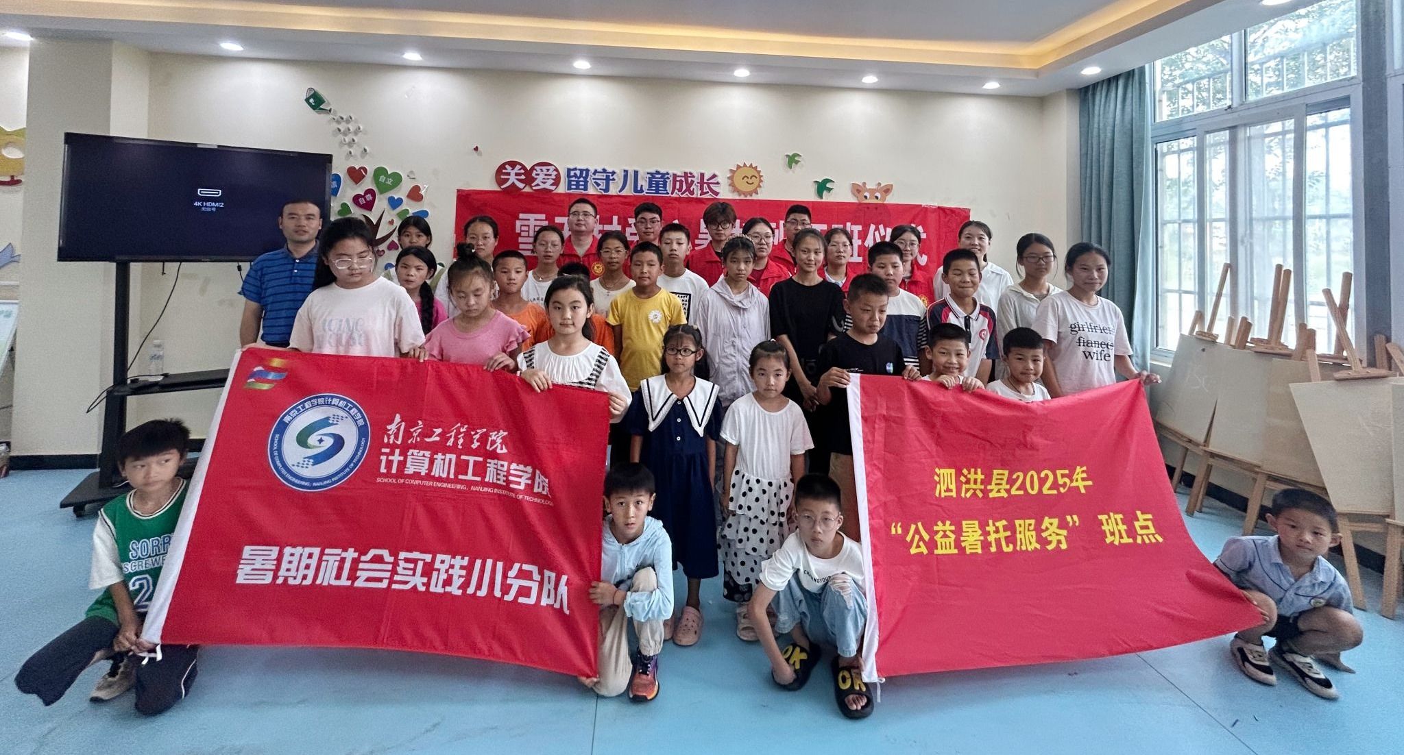 近日,计算机凯发“向阳花开”社会实践团走进宿迁泗洪县双沟镇雪五村,为当地30余名留守儿童开展系列关爱实践活动。