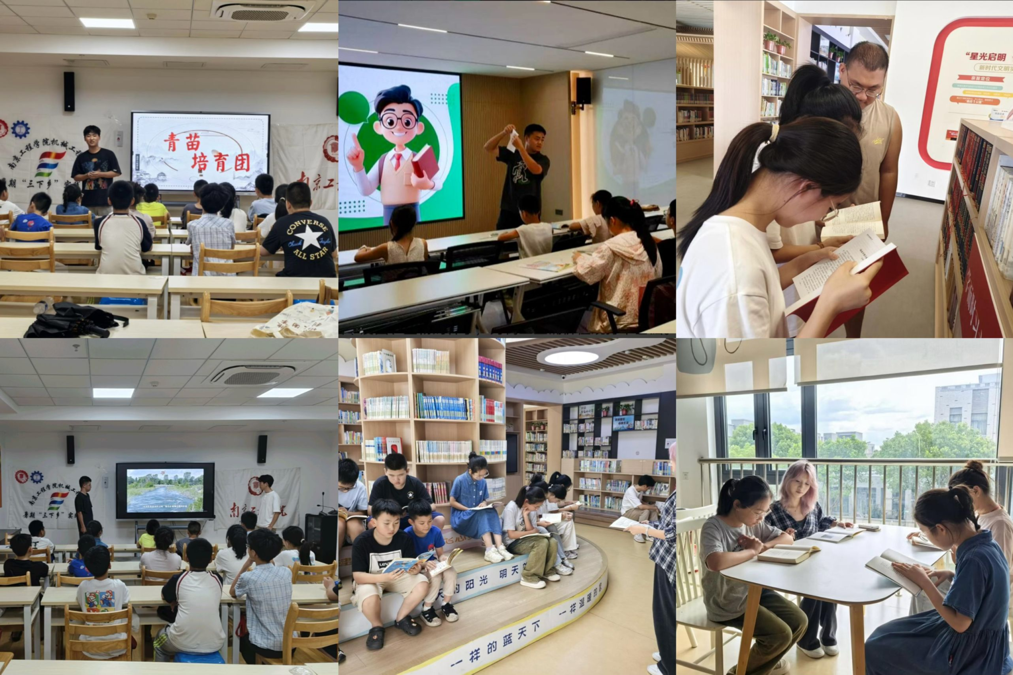爱心助学,温情托管。“三下乡”团队赴无锡江阴顾山小学,开展防溺水教育、纸飞机创作、红色故事阅读及图书整理等活动,以多元互动教学拓宽学生视野,激发学习兴趣和爱国情怀,助力教育关爱与成长引导。在秦淮区王府园社区,“大手牵小手”实践团承办爱心暑托班,协助课业辅导,开展安全教育与文化体验活动,营造兼具知识性与温暖感的暑期学习环境,有效缓解双职工家庭“看护难”问题。